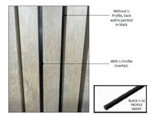 SOLUTION: Painting the back wall black instead of using U profiles is suggested when dealing with larger/exterior walls. Visually, the difference is minimal, and this adjustment could significantly reduce costs without compromising aesthetics.
