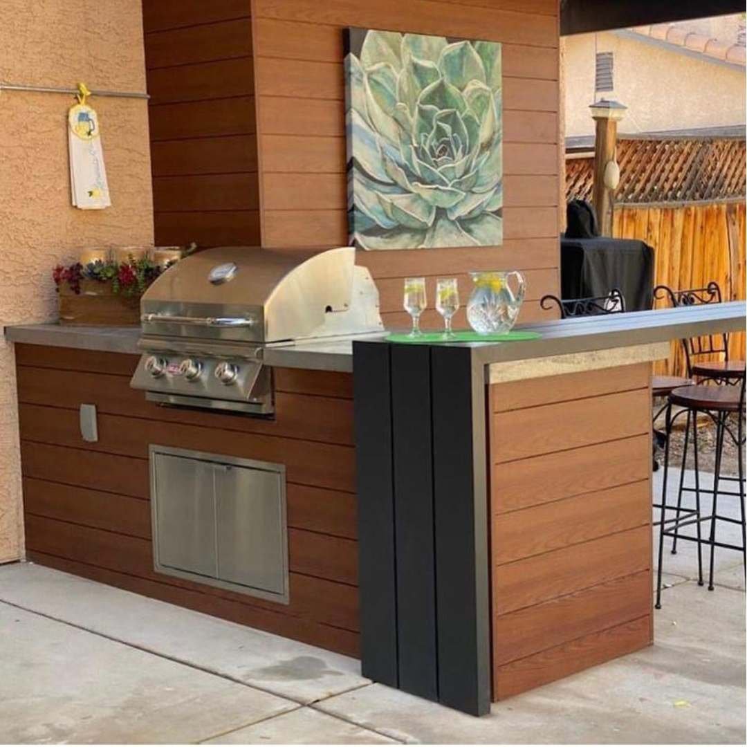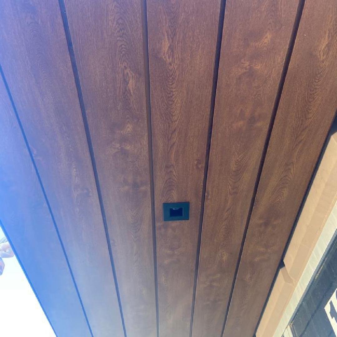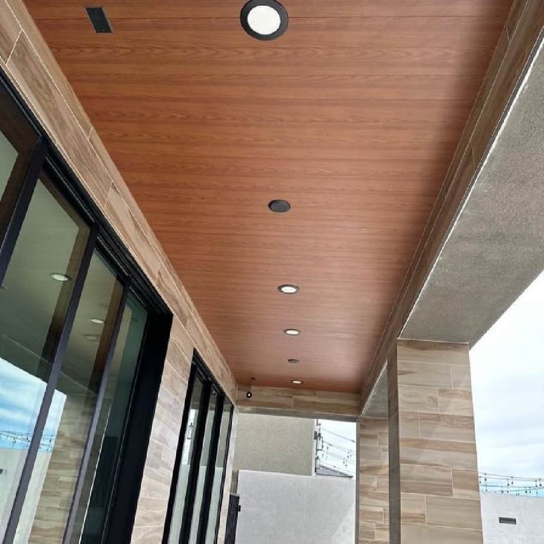 This profile is ideal for exterior cladding. It is wider than other profiles and recommended for covering larger and more massive exterior surfaces. It is highly recommended for ceilings and large buildings because of its wider size, which allows for a more sealed and private environment. It comes in different shades of wood and other colors or can be painted in a custom color. The installation is effortless, and the finishing looks seamless without any noticeable screws or marks.